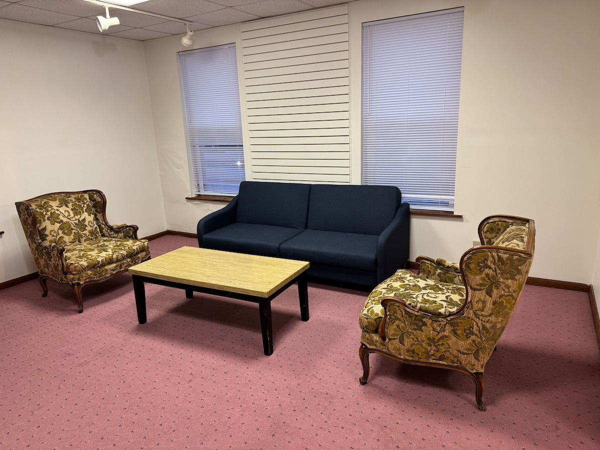 Diese eigenständige Wohnung befindet sich in der untersten Ebene unseres fast 100 Jahre alten Hauses. Wir befinden uns 4 Minuten von FUS entfernt. Du hast eine Außentür, die zu unserer Garage und unserem Parkplatz in unserer Einfahrt führt. Obwohl es ein Schlafzimmer und ein Badezimmer in der Unterkunft gibt, gibt es Platz für eine Luftmatratze (auf Anfrage) oder ein Reisebett (in der Wohnung verfügbar), die entweder im Schlafzimmer oder im Wohnzimmer aufgestellt werden können. Die Küche verfügt über einige Koch- und Essgeräte, um die Zubereitung von Mahlzeiten zu ermöglichen.
