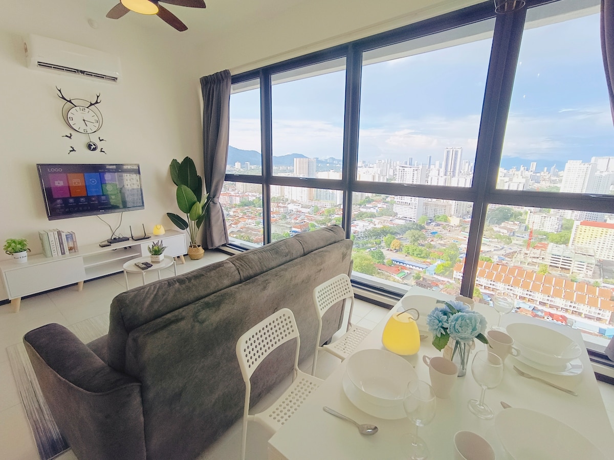The Snug ist ein ruhiger Ort auf dem hohen Stockwerk im Gebäude, wo du jeden Morgen mit einer tollen Aussicht aufwachst. Es ist ideal für Gäste, die mobil arbeiten, Geschäftsreisende und Paare. Die Suite ist 45°, verfügt über 200 Mbit/s WLAN und einen kostenlosen reservierten Parkplatz. Die meisten Orte auf der Insel Penang erreichst du innerhalb von 15 Minuten mit dem Auto. Du konntest den schönen Tag- und Nachtblick auf die Insel Penang von der Suite aus sehen, ein Buch lesen, einen Kaffee trinken und den Sonnenuntergang genießen.