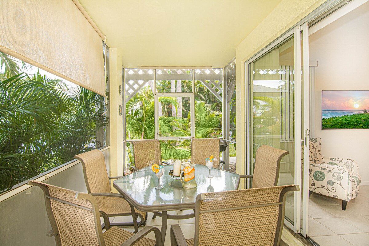 Jupiter Bay Resort – Paradies! Atemberaubende Wohnung im 2. Stock, komplett renoviert! 2 Schlafzimmer (4 Schlafplätze), 2 Bäder, Balkone vom Wohn- und Hauptschlafzimmer. Haustierfreundlich (bis zu 20 Pfund)! Moderne Küche mit Edelstahlgeräten, Smart-TVs, Strandausrüstung, Tennis-/Pickleball-Ausrüstung. Genieße das 30 Hektar große Resort mit funkelnden Pools, entspannendem Spa, Tennisplätzen, lebhafter Twisted Tuna Tiki-Bar, direktem Strandzugang. Schritte zu Geschäften, Theater, Restaurants. Einfacher Self-Check-in, Parkausweis. Buche jetzt!