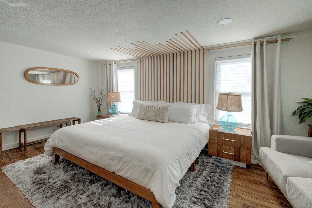 Willkommen in deinem fröhlichen, farbenfrohen und sauberen Zuhause in der Nähe der historischen Innenstadt von Joplin. Genieße durchdachte Details wie eine eingebaute Kaffeebar, eine voll ausgestattete Küche, eine umgebaute Küche, eine Waschküche und ein Badezimmer, geräumige Schränke und eine große Veranda für Unterhaltung. Benötigst du Empfehlungen, was du in der Gegend unternehmen kannst? Wir haben die Antworten!