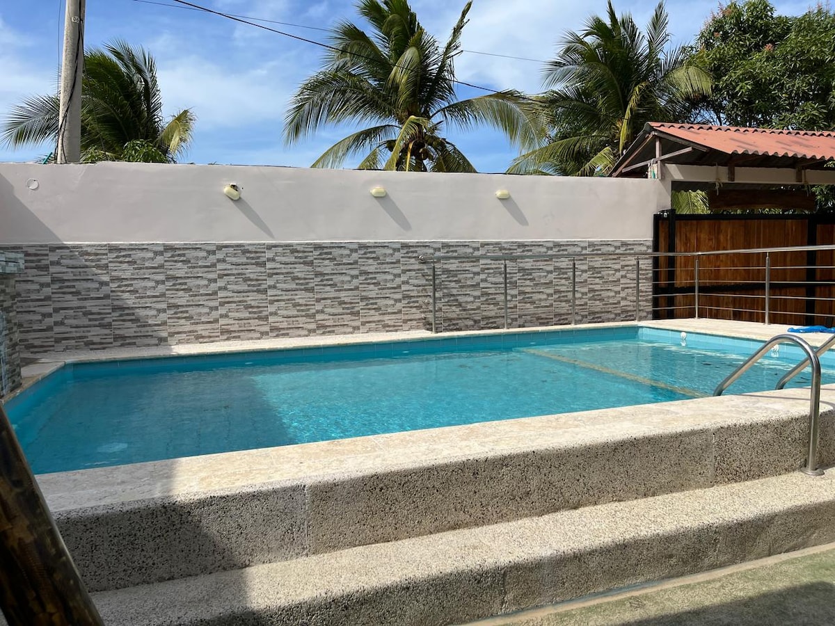 Diese komfortable Villa befindet sich am Rande von Juan de Acosta. Die Villa verfügt über zwei Schlafzimmer mit Klimaanlage, fünf Betten, eine ausgestattete Küche, einen Swimmingpool und einen Grillplatz. Wir lassen mindestens zwei Gäste zu. Wenn du die Unterkunft alleine mieten möchtest, musst du die erste Nacht doppelt bezahlen. Schreibe uns vor deiner Buchung, wenn du mehr darüber erfahren möchtest. Bei Aufenthalten von mehr als drei Nächten ist es notwendig, dass die Wartungsperson die Unterkunft betritt, um den Garten zu bewässern.