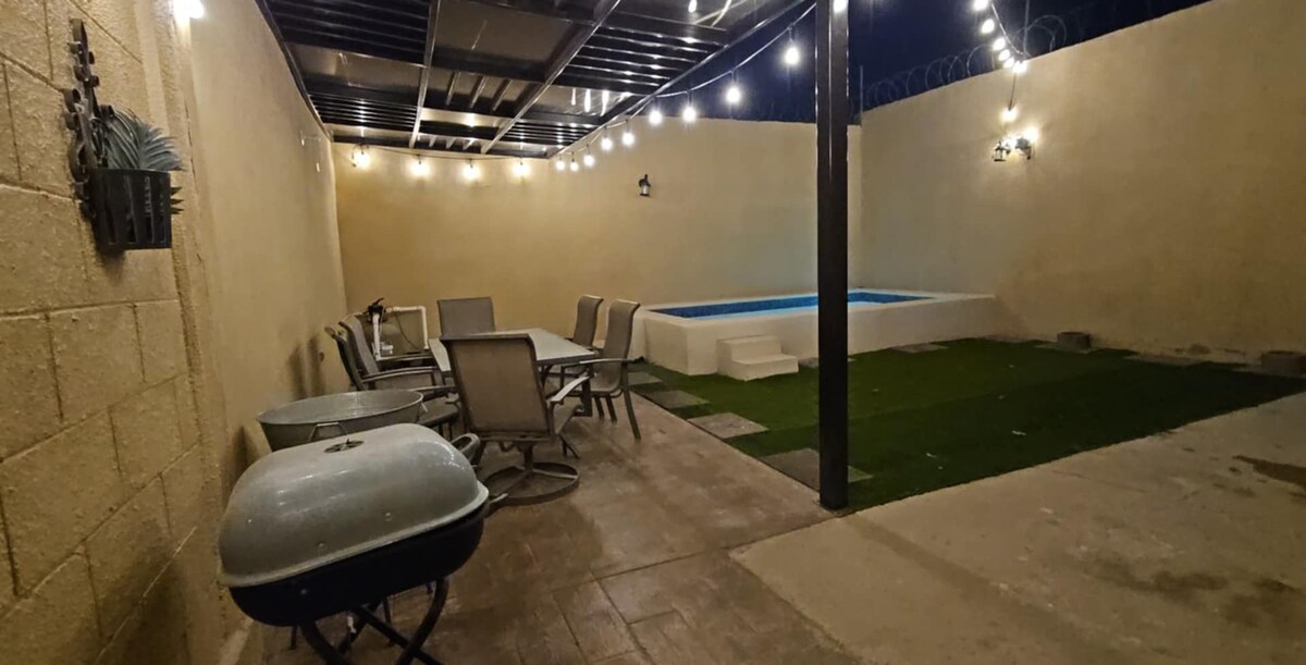 Bitte lies dir vor der Buchung Folgendes durch: PARTYS, EVENTS ODER BESUCHER SIND NICHT ERLAUBT. DIE EINRICHTUNGEN STEHEN AUSSCHLIESSLICH DEN GÄSTEN ZUR VERFÜGUNG. Casa Álamo bietet dir einen angenehmen Aufenthalt, den du mit Familie, Freunden oder einer Geschäftsreise teilen und dich wie zu Hause fühlen kannst. Sie befindet sich in einer Wohnsiedlung mit kontrolliertem Zugang, nur 5 Minuten vom US-Konsulat entfernt. OXXO und eine Apotheke auf der anderen Seite der Allee. Wir haben einen 2,5 x 4 m hohen und 1,20 tiefen Pool mit einem Hang von 80 cm.