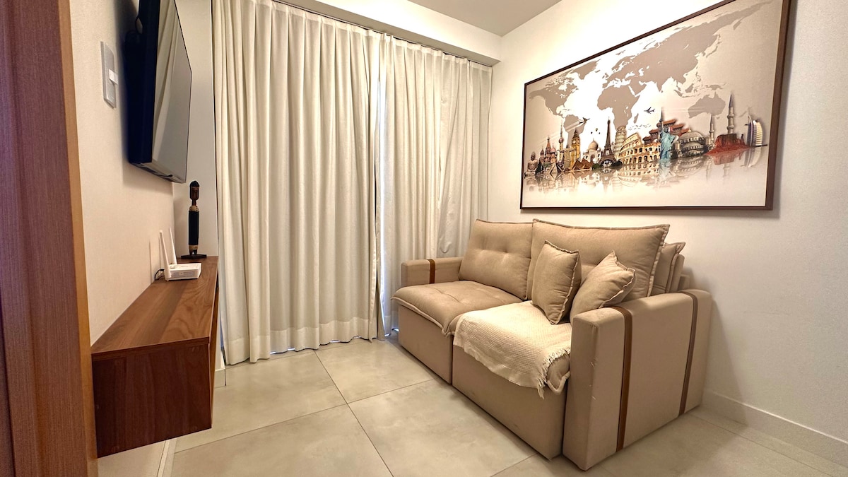 Spüre den Komfort und die Wärme deines Zuhauses im Zentrum von Juiz de Fora, mit kostenlosen Parkplätzen, ob zum Ausruhen oder Arbeiten, mit Highspeed-Internet (500 Mbit/s). Deine Unterkunft hier verfügt über ein bequemes Bett und eine Bettdecke mit 400 Fäden für kalte Nächte, in denen du deine Serie auf dem 50-Zoll-Fernseher ansehen kannst. Wenn es heiß ist, haben wir eine Klimaanlage. Die Küche ist mit Töpfen und Pfannen sowie Keramikgeschirr und allen nötigen Utensilien ausgestattet. Im Badezimmer genießt du die kraftvolle Dusche mit einem doppelten Wasserstrahl.