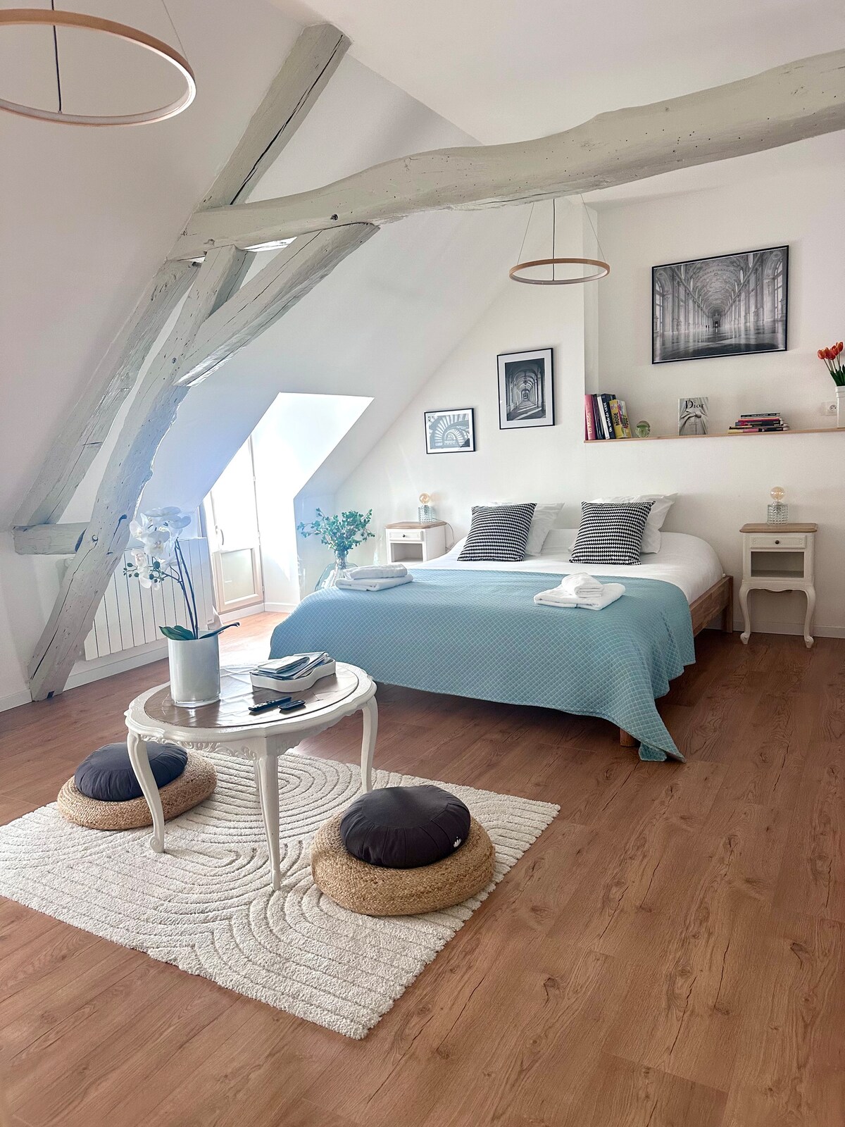 🏠 Die Wohnung befindet sich im historischen Zentrum, nur einen Katzensprung von der Fosse Dionne, dem überdachten Markt und den Geschäften entfernt. 🚗 Parkplatz neben dem Eingang 🚄 Bahnhof in 300 Metern 🚲 Großer sicherer Fahrradraum 🍽 Eine halboffene Küche zu einem warmen und hellen Wohnzimmer. 🛌 Ein klimatisiertes Schlafzimmer mit einem Queensize-Bett mit direktem Zugang zum Badezimmer mit allem, was man braucht. ☀️ Eine Terrasse mit Blick auf Saint Pierre, ideal für einen Drink in der Sonne🍹