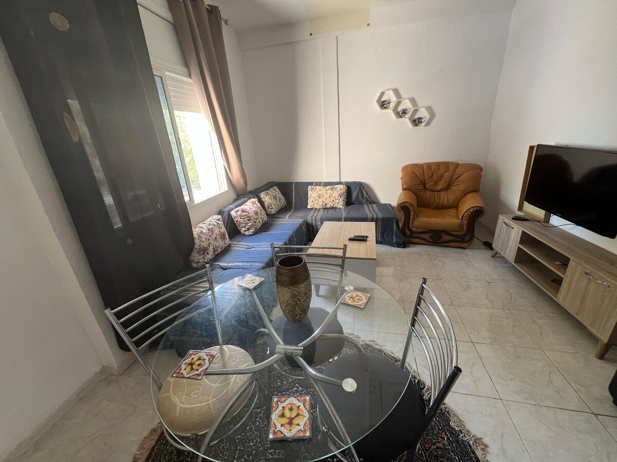 Ce logement parfaitement situé en plein centre d'El Mourouj 1 offre à la fois confort et proximité, il se situe à 20 minutes de l'aéroport et à 10 minutes de Tunis centre. La cuisine est bien équipée et un petit salon bien décoré avec un canapé bien confortable. L'appartement a été retapé à neuf en Avril 2024. Le prix est une offre exceptionnelle de lancement.