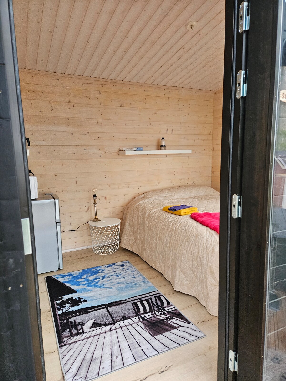 Verzauberung und Ruhe von Kelo. Ungefähr 11 m² große Fläche in der zweiten Etage des Gebäudes. Miniküche, Bett für 1-2 Personen. Elektrische Beleuchtung und Heizung, laufendes kaltes/heißes Quellwasser, Miniküche (Elektroherd, Kühlschrank, Kaffeemaschine, Mikrowelle, Geschirr und Besteck), wiederaufladbarer Stielstaubsauger. Bettwäsche ohne Bettwäsche, WLAN. Balkon. Gemeinsame beheizte Toilette unten. Dusche in separatem Saunagebäude.