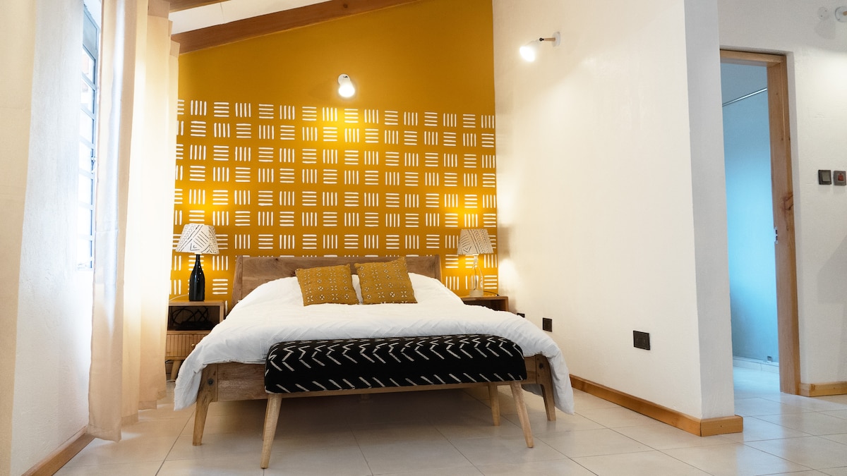 Ein gemütliches Zimmer in Karen mit einem Doppelbett