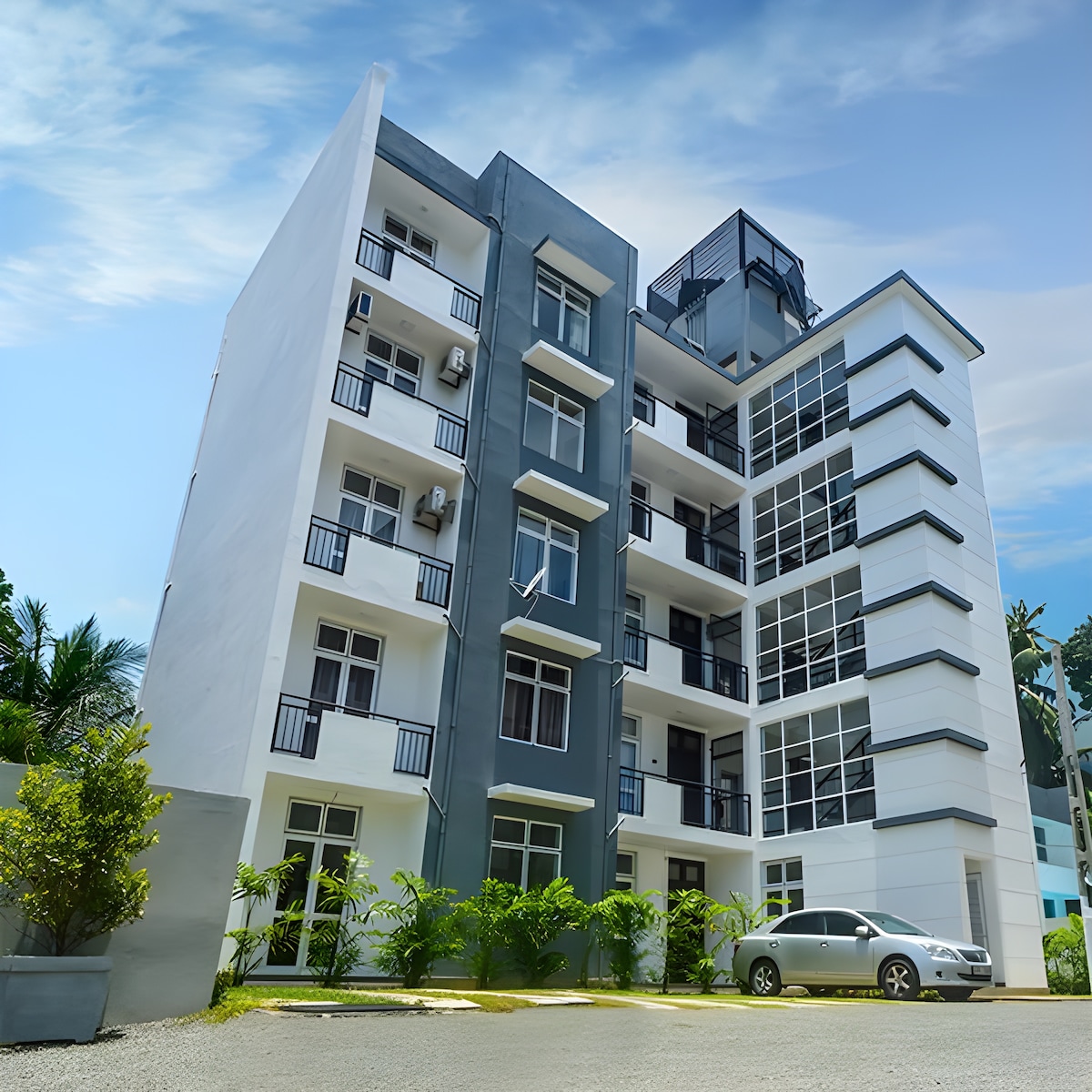 Lehne dich zurück und entspanne dich – in dieser ruhigen, stilvollen Unterkunft. Nur 30 Minuten zur Hauptstadt Sri Lanka und nur wenige Minuten vom Highway Eingang entfernt. - 10 % wöchentlich & 25 % Rabatt werden für einen Monat oder länger gewährt - AUFZUG - GENERATORSTROM für die gesamte Einheit, einschließlich Klimaanlage - Waschmaschine in der Unterkunft - voll ausgestattete Küche mit Geräten, einschließlich eines großen Kühlschranks und Herds - Glasfaser-TV + WLAN ab 40 GB monatlich. - Klimaanlage / Ventilatoren. - Komplettes Sofa-Set im Wohnzimmer - Warmwasseranlage