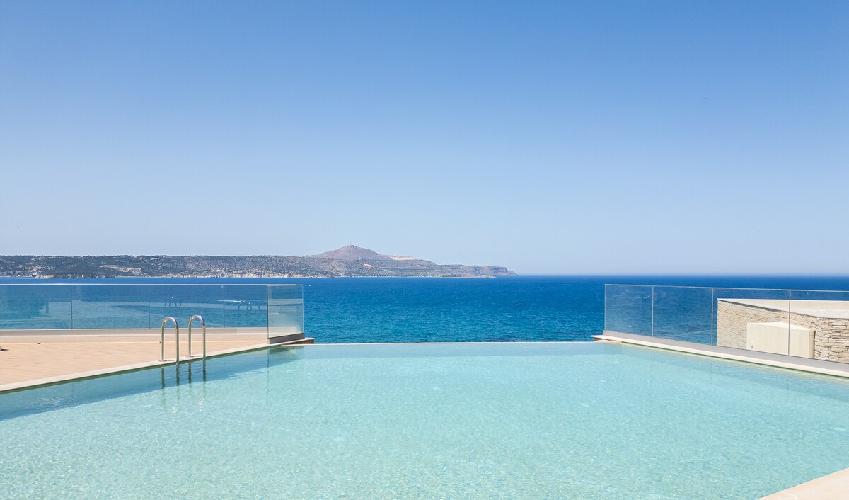 Genieße den atemberaubenden Panoramablick auf die Bucht von Souda, während du dich im Luxus verwöhnst. Seascape ist das ultimative Penthouse. Als Teil des Panorama Village, einem neu erbauten Komplex in Kalyves auf Kreta, fühlst du dich auf der 120 m² großen Dachterrasse von Seacape wie ein Teil der mystischen Ägäis. Die Unterkunft ist auf höchstem Niveau eingerichtet und bietet Paaren das ganze Jahr über Komfort mit einem hochmodernen Heiz- und Kühlsystem, beruhigenden Wandbildern, Highspeed-Internetzugang, modernen Einrichtungen, Pool und atemberaubenden Sonnenaufgängen/-untergängen.