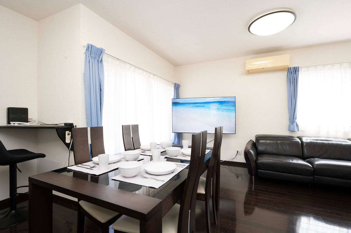 Adults up to 4. 2 double beds (+ up to 2 extra floor mattresses available for a fee) A stylish and cozy house in a quiet residential area, 2 minutes to beach. Designed with warmth and creativity, the space features wood textures, an open kitchen and dining area, and a calm atmosphere perfect for relaxing or working remotely. Relax on the rooftop with a dining table — perfect for coffee, meals, and Mt. Fuji views. Please respect neighbors; no parties or loud gatherings allowed.
