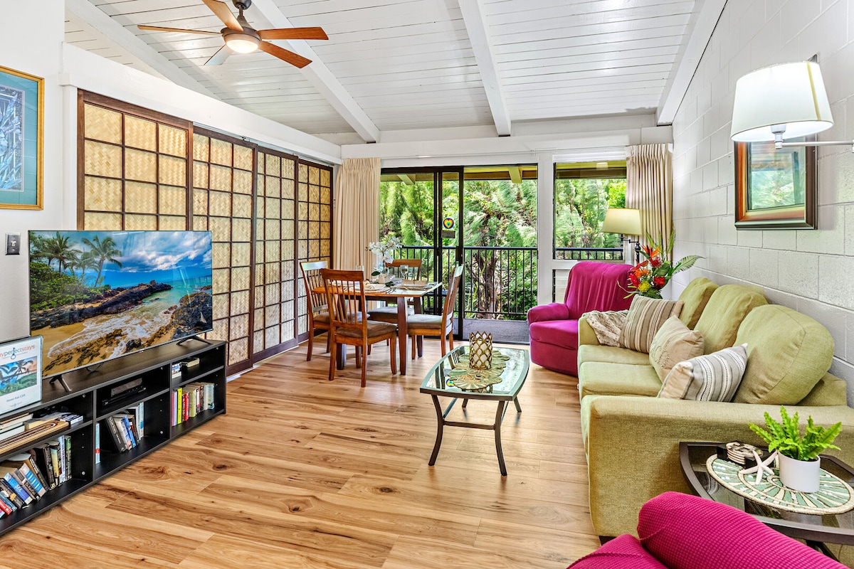 Willkommen in Ihrem tropischen Paradies! Betritt unsere Einheit mit 1 Schlafzimmer und 1 Badezimmer im Erdgeschoss, nur wenige Schritte vom funkelnden Pazifischen Ozean entfernt. Umgeben von lebendigen hawaiianischen Pflanzen, genieße den Pool, die Grills und die üppige Grünfläche. Ideal für Familien oder einen romantischen Kurzurlaub, nur einen kurzen Spaziergang vom atemberaubenden 6 Meilen langen Sugar Beach entfernt. Entspanne dich auf deiner Veranda und erlebe Hawaiis längste Lockenwelle sowie faszinierende Sonnenauf- und Untergänge. Du kannst freundliche Meeresschildkröten sehen, die am Strand schwimmen und sich entspannen!