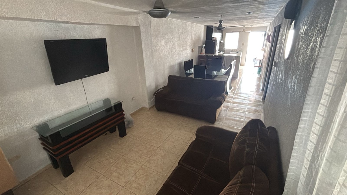 Schöne Wohnung, die alle Annehmlichkeiten (WLAN, Netflix, Klimaanlage, heißes Wasser) bietet, um sich nach einem Tag zu Fuß auszuruhen. Es gibt Geschäfte gegenüber und 1 Block entfernt gibt es eine Allee mit mehreren Essensständen. Sie befindet sich im östlichen Teil der Stadt, 5 Minuten von der Ringstraße, 10 Minuten von der Ausfahrt nach Cancun, 25 Minuten von der Innenstadt, 40 Minuten vom Strand und den Cenoten entfernt. Inklusive einer wiederaufladbaren Karte für öffentliche Verkehrsmittel (Va-y-Ven und IETRAM).