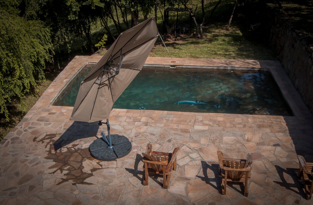 Entspanne dich mit der ganzen Familie im Mazolola Safari Resort. Genieße die ruhige, saubere Unterkunft. Genieße eine atemberaubende Aussicht und die lokale Tierwelt (Elefanten).