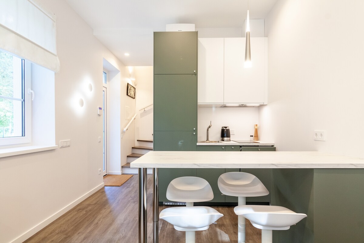 Ein neues, modernes Ferienhaus mit privatem Garten in der Nähe des Meeres (10 Minuten zu Fuß). Hier findest du alles, was du für deinen Urlaub oder deine Geschäftsreise mit der Familie oder Freunden benötigst. Die Unterkunft ~42 m2 Erster Stock – Wohnzimmer, Küche und Badezimmer. Zweiter Stock – zwei Schlafzimmer mit Doppelbetten. Eines der Schlafzimmer verfügt über einen eigenen Arbeitsbereich. Für einen komfortablen Aufenthalt: WLAN-Internet, Fernseher, Mikrowelle, Kühlschrank, Waschmaschine, Trockner, Küchenutensilien, Bettwäsche und Handtücher. Privatparkplatz. Terrasse. Genieße das Leben am Meer!