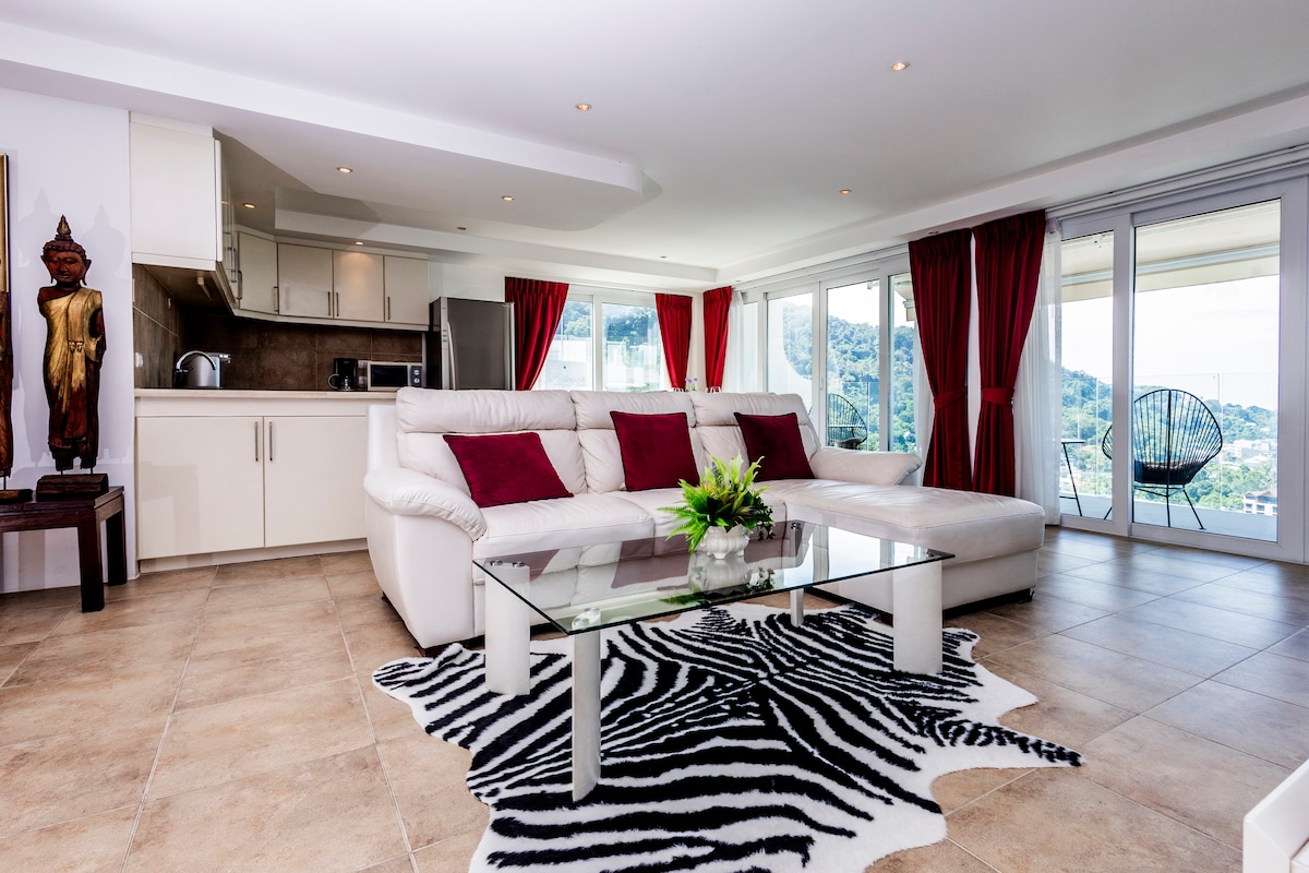 Karon Beach| Hochhauswohnung mit Berg- und Meerblick| Schwimmbad und Fitnessraum| Günstige Verkehrsanbindung