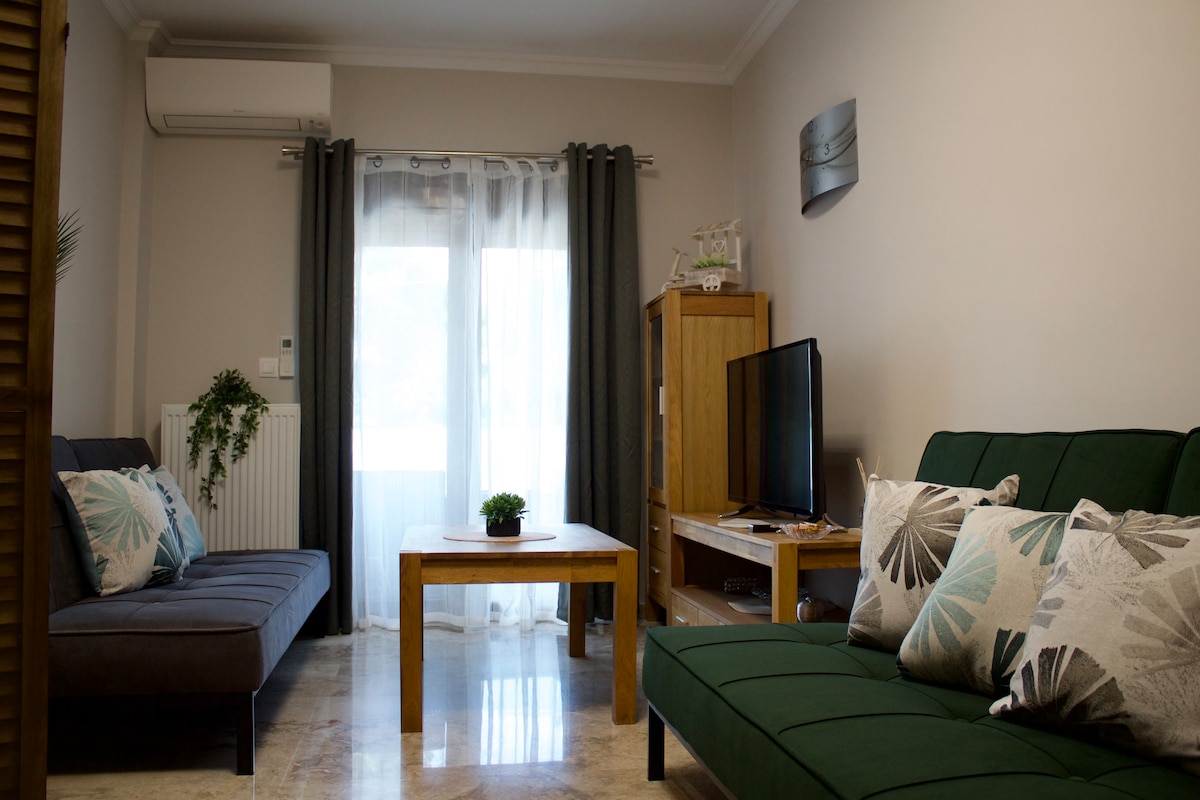 Willkommen in unserem neu erbauten Haus, in dem wir eine separate luxuriöse Souterrain-Wohnung von 60 m² vermieten. Es befindet sich in einer ruhigen Gegend, verfügt über einen Garten, einen Pool im Gemeinschaftsbereich. Der Eingang zum Apartmentbereich ist privat für die Gäste. Das Haus ist 3 Minuten mit dem Auto vom Strand und 6 Minuten vom Zentrum entfernt. Mit dem Auto beträgt die Entfernung vom Flughafen 17 Minuten und 5 Minuten vom Hafen von Rafina. Die Gegend von Artemis ist ein beliebter Ort für Wassersport (SUP, Windsurfen, Kitesurfen).