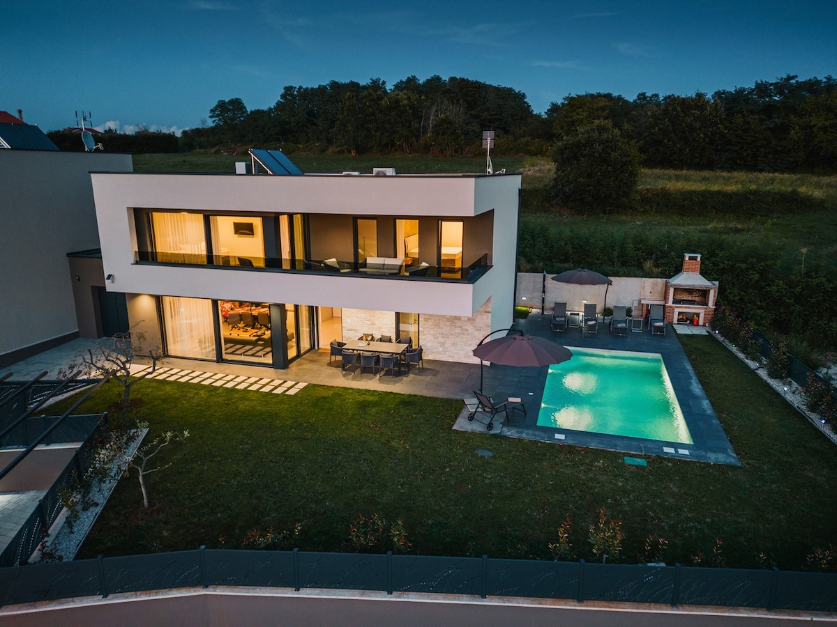In der Nähe von Poreč, finden Sie die freistehende Villa SUN, mit Swimmingpool und Meerblick. Die 2025 fertiggestellte Villa SUN - eingerichtet mit Italienischen Designermöbeln, verteilt sich auf zwei Etagen. Ein besonderes Highlight ist die BBQ-Küche am Pool. Der Wohn- Essbereich lädt zu schönen Abenden ein. In den gemütlichen Schlafzimmern finden Sie erholsamen Schlaf und wachen mit Meerblick auf. Ein großer umzäunter Garten, für Kind und Hund zum spielen. E-Ladestation für Autos im Hof.