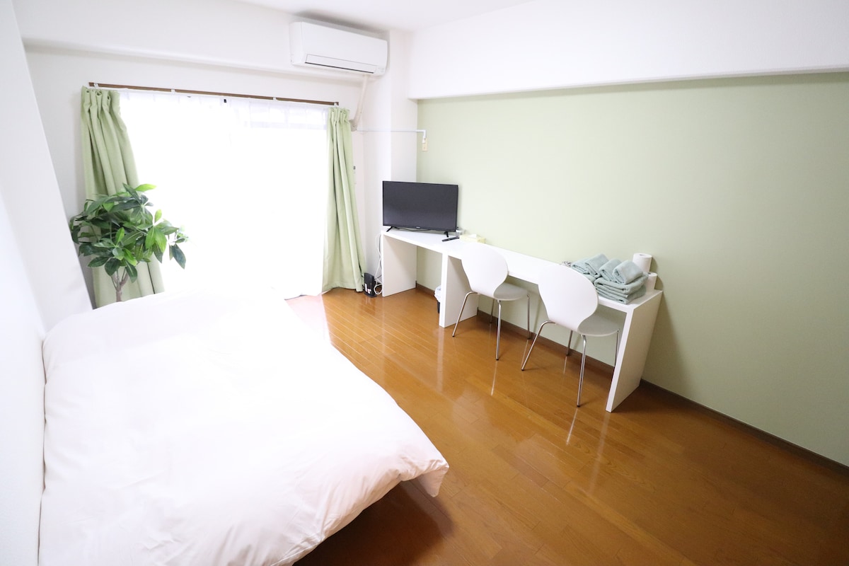 3 Haltestellen mit dem Zug von „JR Minami Fukuoka Station“ von Hakata Station, 2 Gehminuten! Minami Fukuoka bis zum Bahnhof Hakata ist 1 Station und 5 Minuten mit dem Schnellzug oder 9 bis 12 Minuten mit dem regulären Zug - sehr praktisch. ★Zimmerausstattung★ Toilette → 1 (keine Bidet-Toilette ✖️) 1 Badezimmer mit einer → Badewanne →Kein Parkplatz * Bitte nutze einen kostenpflichtigen Münzparkplatz in der Nähe Bitte schau dir die Inseratsfotos an♪ Innerhalb von 5 Gehminuten gibt es auch einen Supermarkt, einen 24-Stunden-Supermarkt und viele gute Restaurants. Das Gebäude verfügt über einen Aufzug, sodass du dich auch mit viel Gepäck einfach entspannen kannst! Es gibt auch viele günstige Münzparkplätze in der Nähe! Das internationale Terminal des Flughafens Fukuoka ist ebenfalls in der Nähe, was es bequem macht, Taxis zu nutzen. Es gibt alles, was du brauchst, also ist es perfekt für Langzeitaufenthalte♪ Die Betten des Zimmers 1 Halbdoppelbett 2 Schlafcouch-Futons (jeweils für 1–2 Personen) Von Gästen wird erwartet, dass sie Futons zur Nutzung auf den Boden legen. ✨☺️ * Die Anzahl der Personen, die hier übernachten können, beträgt 2 Personen mit einem Halbdoppelbett (Futon)
