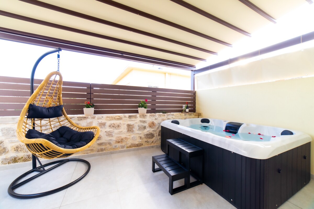 Entspanne dich an deinem privaten Pool, koche in der Sommerküche mit Grill und entspanne dich an der Feuerstelle unter den Sternen – alles umgeben von Natur und atemberaubendem Blick auf die Berge, das Tal und das Meer. Statt Touristenmassen erlebst du echtes kretisches Leben: Speise dort, wo die Einheimischen speisen, erkunde ruhige Wanderwege und genieße Privatsphäre in einem wirklich nachhaltigen, netzunabhängigen Zuhause. Platz für 4 Gäste. 2 Schlafzimmer, 1 Badezimmer, voll ausgestattete Küche, Klimaanlage (Eco Aircooler), WLAN, beheizter Pool. 20 Minuten zum Strand. 20 Minuten zum Flughafen.
