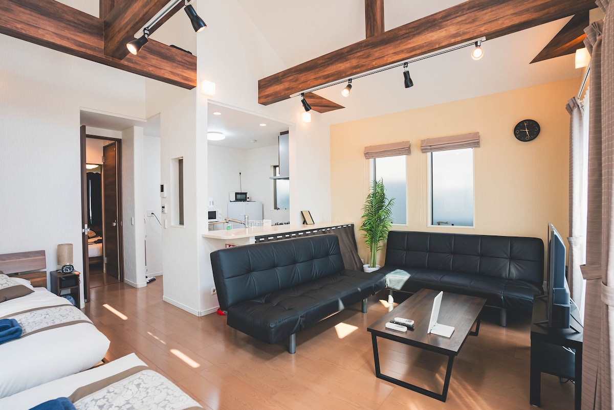 Schön, dass du da bist! Dieses Gasthaus befindet sich am „Tor nach Tokio“, wo du mit dem Zug zum Flughafen Haneda und zum Flughafen Narita fahren kannst, und ist nur 5 Gehminuten vom Bahnhof Keisei Tateishi entfernt.Es gibt Lebensmittelgeschäfte, Supermärkte und Restaurants in der Nähe, und du kannst leicht beliebte Orte wie Skytree, Asakusa, Ginza, Shibamata Taishakuten, Shibuya, Shinjuku, Disneyland und Mt. Takao erreichen.Es ist eine günstige Lage für Sightseeing und Langzeitaufenthalte. Das Gebäude wurde 2024 neu gebaut, befindet sich in einem ruhigen Wohnviertel und hat ein beliebtes modernes Design mit einem sauberen Gefühl. Das Zimmer verfügt über 2 Doppelbetten und 2 Hochbetten und ist groß genug, damit 4 Erwachsene getrennt schlafen können. Es ist komplett mit Küche, Kühlschrank, Mikrowelle, Waschmaschine und WLAN ausgestattet, und das Bad und die Toilette sind getrennt, sodass du dich wie zu Hause fühlen kannst. Das Loft-Bett ist mit einem verspielten Kletterefeu gestaltet, sodass du dich wie Mario fühlst.Es gibt auch einen Hängestuhl, sodass es perfekt für Familien mit Kindern ist. Der angrenzende Raum befindet sich im ersten Stock des Gebäudes und ist eine Indoor-Golf-Driving-Range.Da es sich um ein Holzgebäude handelt, können Geräusche widerhallen, aber wir werden dich im Voraus informieren und uns bemühen, deinen Aufenthalt komfortabel zu machen.Der Gastgeber antwortet schnell und höflich, sodass auch Gäste, die zum ersten Mal buchen, mit einem guten Gefühl buchen können.