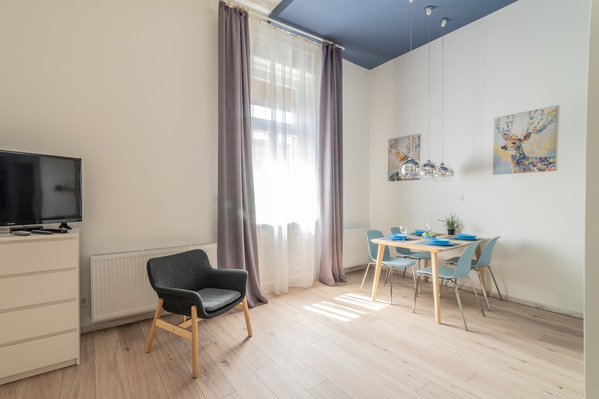 Budapest verbindet historische Denkmäler und einen modernen urbanen Lebensstil. Tagsüber findest du viel zu sehen und zu erleben, während du nachts einzigartige Ruinenkneipen erkunden oder typisch ungarische Gerichte in einem unserer ausgezeichneten Restaurants probieren kannst, aber du wirst dich sicherlich nie langweilen. Wenn du auf der Suche nach einem ruhigen Ort bist, aber in der Nähe von öffentlichen Verkehrsmitteln und dem Nachtleben, hast du ihn gefunden. Sei unser Gast in dieser gemütlichen, komplett renovierten, klimatisierten und gut ausgestatteten Wohnung. Wir sind sicher, dass du dich wie zuhause fühlst.