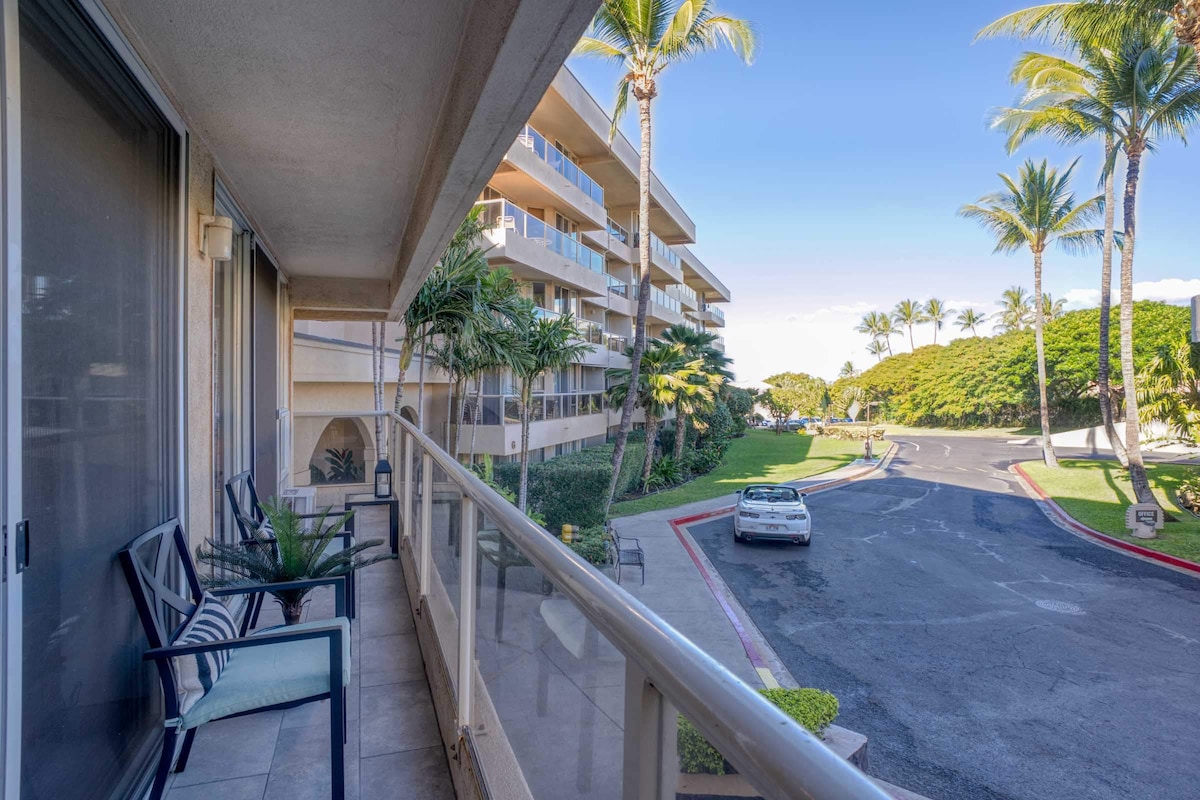 Exquisit renovierte Studiowohnung im obersten Stockwerk in einem der begehrtesten Wohnkomplexe in Süd-Maui. Genieße Sonnenuntergänge und einen Blick auf das Meer von deiner privaten Veranda aus, spaziere zu einigen der schönsten Strände und Restaurants und entspanne dich in den zahlreichen Pools und Whirlpools auf dem Grundstück! Alles ist kürzlich renoviert und mit allem ausgestattet, was du brauchst, um dich wie zuhause zu fühlen (einschließlich 2 Liegestühle und einem Sonnenschirm).