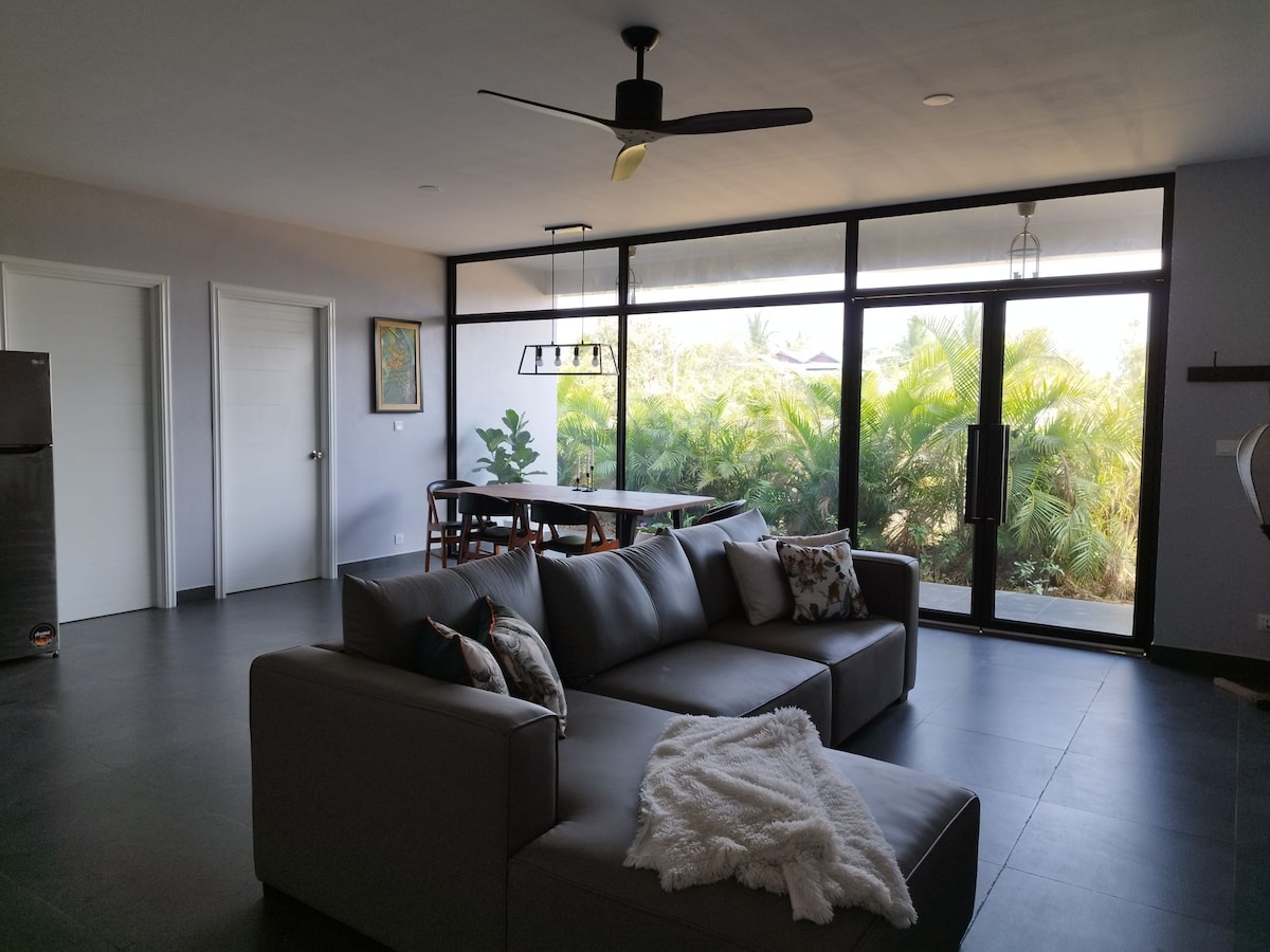 Lehne dich zurück und entspanne dich in diesem ruhigen, stilvollen Raum. Übernachte in unserer Villa mit 5 Betten und 4 Bädern in Kep, die mit Ruhe gestaltet wurde, und ein unvergesslicher Rückzugsort für Familien, Freunde oder große Gruppen. Perfekt für 12-20 Gäste. An der Hauptstraße von Kep gelegen, aber dennoch für Privatsphäre, Ruhe und Sicherheit konzipiert, genieße einen großen Pool mit einer Pergola für sternenbeleuchtete Abendessen, Grill und voll ausgestattete Küche und üppiges Grün. Umgeben von Bäumen ist es ein perfekter Rückzugsort für Familien und Gruppen. Buche jetzt für einen erholsamen und unvergesslichen Aufenthalt!