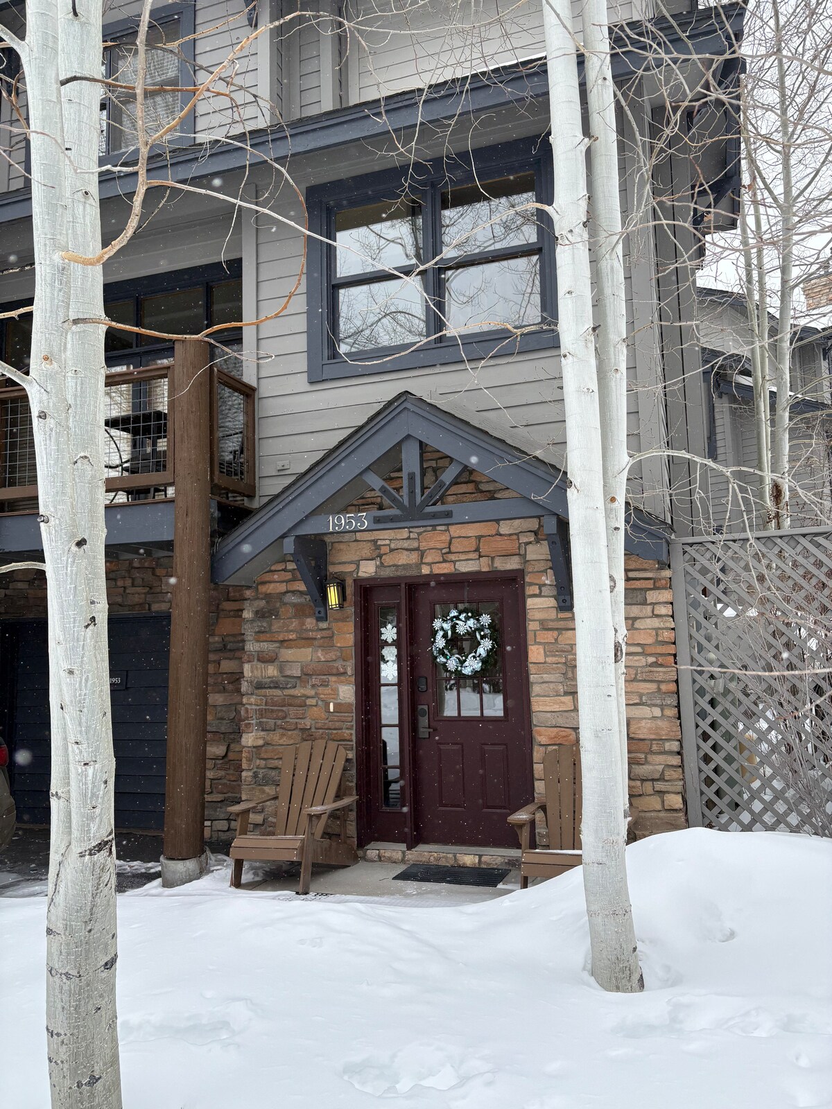 Für Weihnachten dekoriert! Stilvolles Silverthorne Mountain Wanderland! 2 Schlafzimmer/2,5 BA Premium-Stadthaus mit angeschlossener Garage in Silverthorne. Zu Fuß in die Stadt/Fahrt zu den Pisten. Schlafplätze für 6: Kingsize-Bett, Queensize-Bett, Queensize-Schlafsofa. Schöne Küche, Dachterrasse, Whirlpool, WLAN, Kaffeebar, Gaskamin, Sonos, Amazon Alexa und Echo Show. Jedes Detail wurde bei der Ausstattung dieser Unterkunft für deinen Komfort berücksichtigt.
