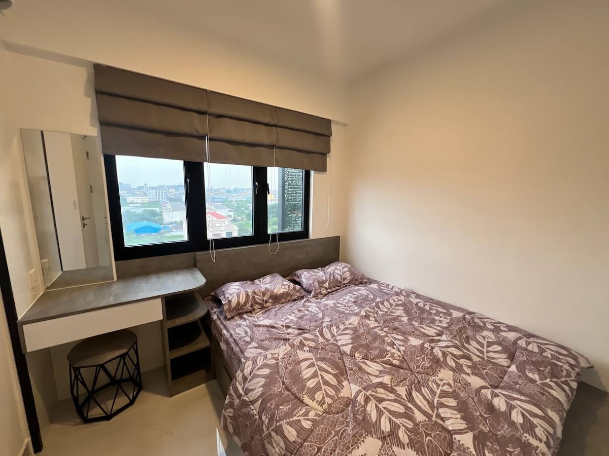 Diese moderne Wohnung befindet sich im 11. Stock des Timesquare 2 in Toul Kork und ist perfekt für Familien, Geschäftsreisende oder längere Aufenthalte. Highlights 🏠 der Unterkunft • 3 Schlafzimmer, 2 Badezimmer (Platz für bis zu 4 Gäste) • Ein Schlafzimmer, das in ein stilvolles Homeoffice umgewandelt wurde • 4 Klimaanlagen für vollen Raumkomfort • komfortable Betten, die Gäste für eine erholsame Nachtruhe lieben • Ideal für digitale Nomaden, die einen längeren Aufenthalt planen und eine moderne, voll ausgestattete Unterkunft zum Leben und Arbeiten in Phnom Penh suchen