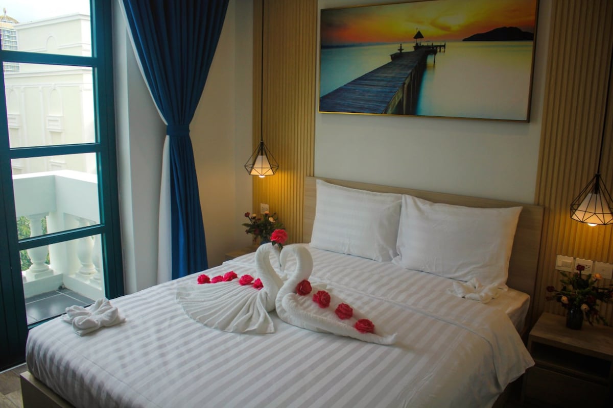 Erlebe eine globale Reise im Skyline Hotel Phú Quốc, eingebettet in der Nähe des unberührten Khem Beach. Unser Boutique-Hotel bietet einzigartige Themenzimmer, inspiriert von Afrika, Europa, Brasilien, Vietnam, Japan, Marokko und modernen internationalen Designs. Nur wenige Minuten vom weißen Sandstrand und klaren Wasser von Khem Beach entfernt. Genieße unsere breite Palette an Dienstleistungen wie kostenlosen Shuttle zum Strand, Motorradverleih, Flughafentransfer und verschiedene Gästetouren. Buche jetzt, um verschiedene Kulturen bequem zu erkunden!