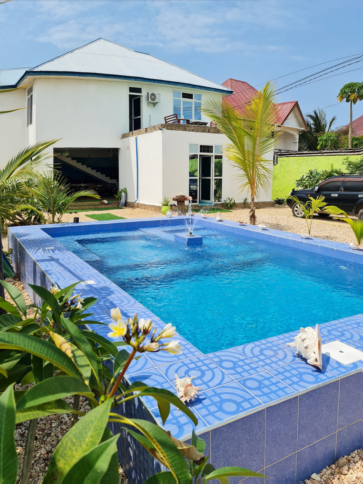 Welcome to Nungwi’s first & only Villa with a Private Rooftop Pool, offering privacy & modern comfort. Perfect for couples, friends, or families, this villa features 2 Ensuite bedrooms, a living room, & a fully equipped kitchen. Relax on your private rooftop terrace with a pool, lounge area, & bathroom. Completely solar-powered, the villa ensures uninterrupted comfort with WiFi. Breakfast & drinks are available upon request. Free delivery from BARAKANA, top-rated & affordable restaurant .