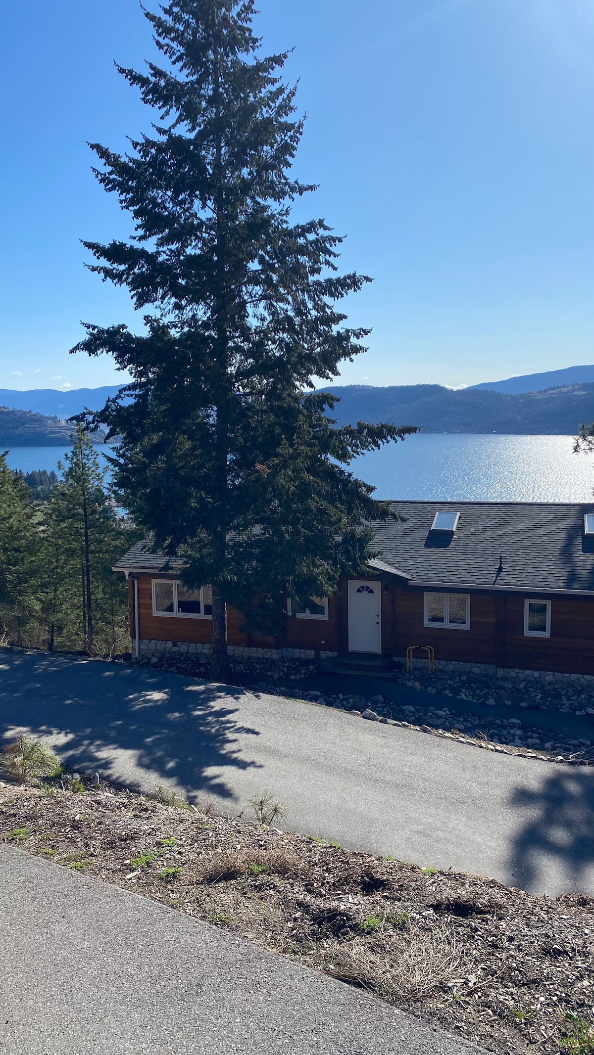Enjoy stunning lake and mountain views from this beautiful room with floor-to-ceiling windows. Relax in this cozy suite with a private entrance and patio. Unwind in the bathtub or rain shower, slip into a bathrobe, and enjoy a glass of wine from the comfort of your room, after a day of exploration. Our Airbnb is ideal for guests who appreciate a quiet, relaxing stay. Not suitable for loud gatherings or parties. Located near Knox Mountain, 7 min drive from downtown, beaches, and nature.