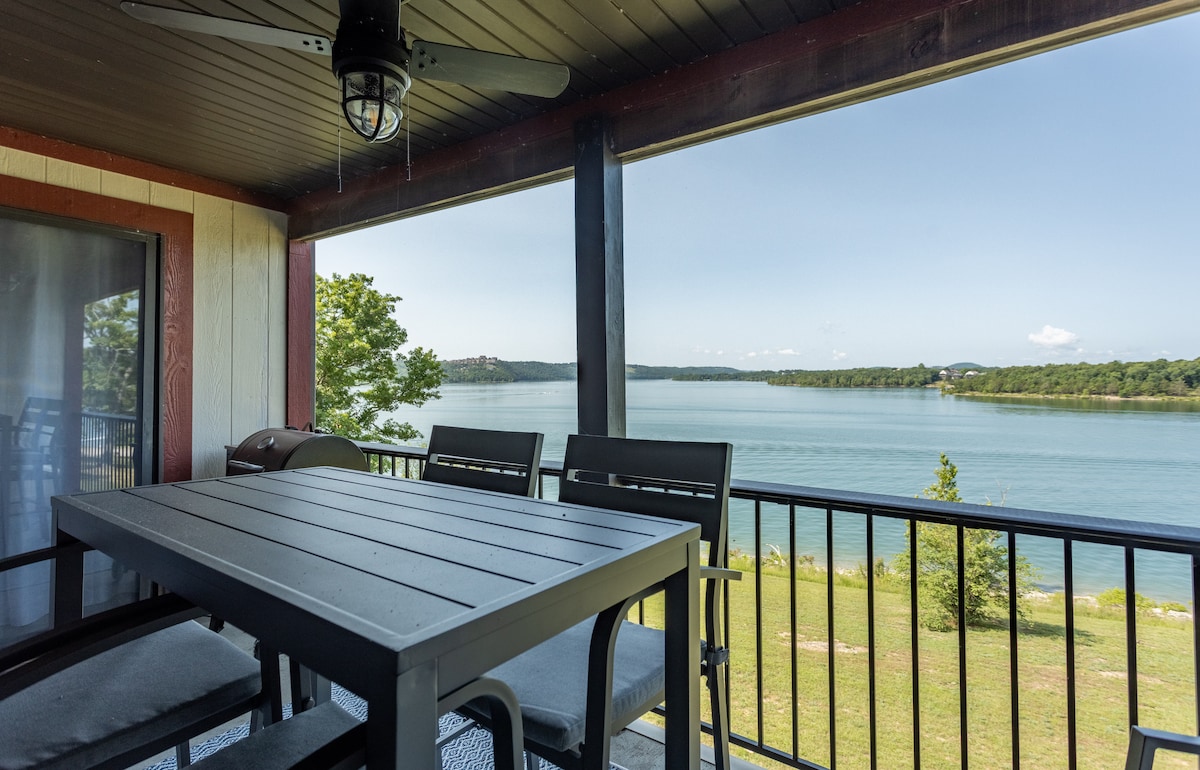 Entfliehe in dieses Penthouse-Retreat am Lakefront am Table Rock Lake, das einen ungestörten Blick auf die oberste Etage bietet und eine perfekte Kulisse für einen romantischen Urlaub, einen Familienurlaub oder einen Mädelsausflug (oder Jungs, wenn sie das tun)! Nur wenige Minuten von Silver Dollar City, Dogwood Canyon und 30 Minuten vom Branson Strip entfernt. Genieße gewölbte Decken, eine voll ausgestattete Küche, ein Schlafsofa, eine Waschmaschine/einen Trockner und eine private Terrasse mit herrlichem Blick auf den See. Erhalte 10 % Rabatt auf Tickets, wenn du diese Eigentumswohnung buchst. Entspanne dich, erkunde und sorge für bleibende Erinnerungen!