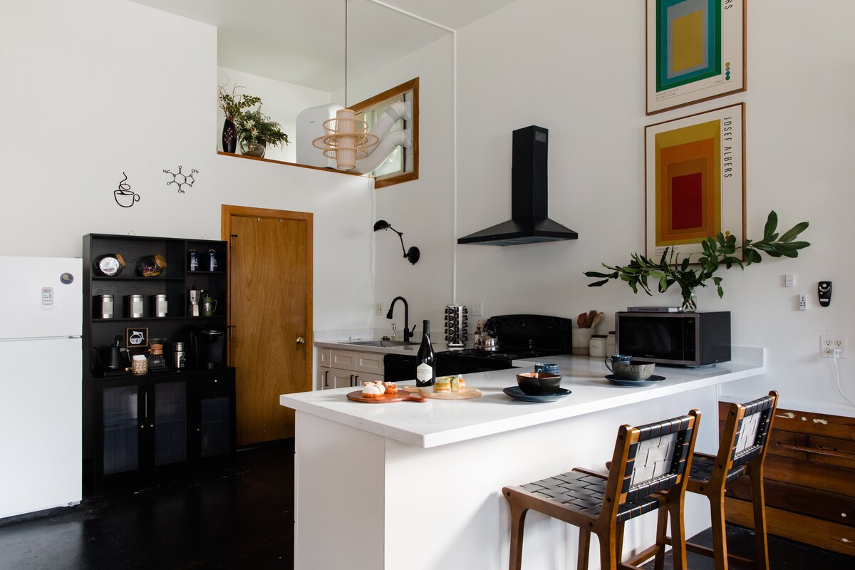 Das Urban Loft: 16ft Decken, ADA zugänglich & Ballard-Bound Transit Willkommen in deinem lichtdurchfluteten, loftartigen Refugium mit dramatischen 16-Fuß-Decken und Fensterwänden mit Sichtschutzwänden. Mit 525 Quadratfuß fühlt sich diese Unterkunft unglaublich luftig, offen und komfortabel an – sie ist der ideale Ausgangspunkt für deine Abenteuer in Seattle. Es befindet sich in einer belebten Straße und es gibt ein Airbnb im Obergeschoss, also wenn du empfindlich auf Lärm reagierst, sei dir bitte bewusst. Keine Check-out-Aufgaben!
