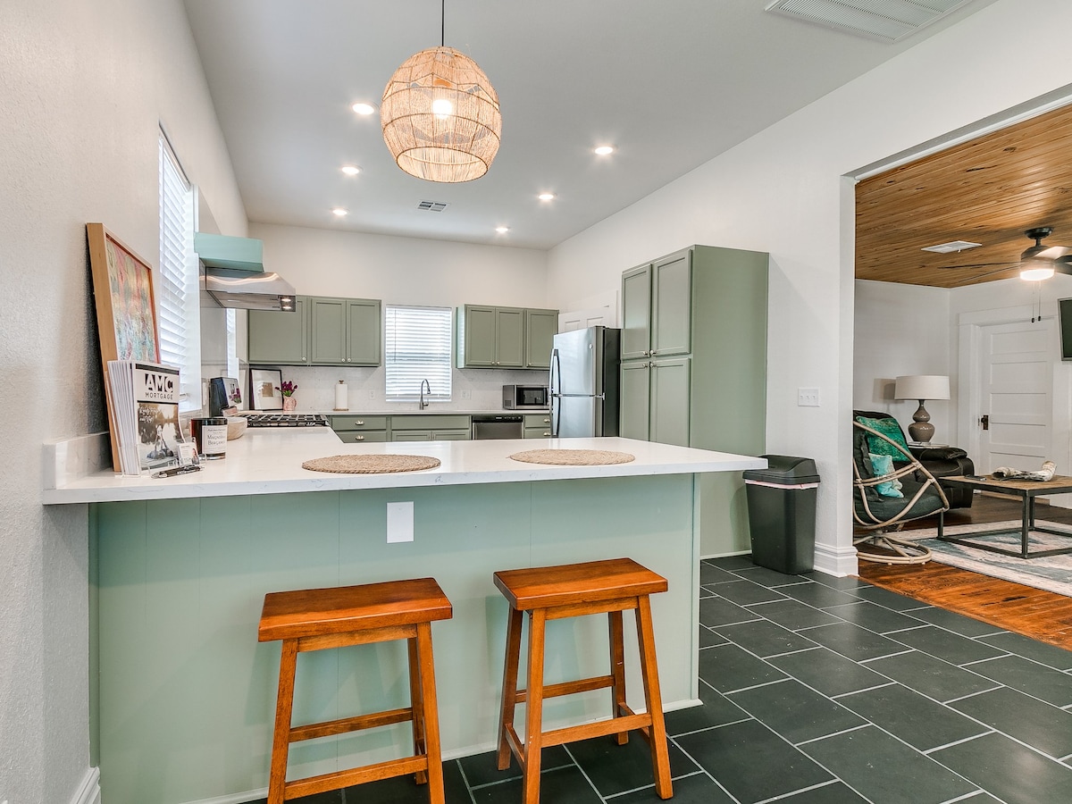 Willkommen in Kades Casita, wo wir dich und deine Familie einladen, dieses einzigartige 100 Jahre alte Haus im Herzen von Kingfisher zu besuchen. Du wirst von einem geräumigen Wohnzimmer begrüßt, das sich zum formellen Esszimmer hin öffnet, gefolgt von der Küche. Du wohnst in einem von drei Schlafzimmern, die mit Queensize- und Einzelbetten ausgestattet sind. Du kannst gerne die Vorteile der Waschmaschine und des Trockners nutzen und deinen morgendlichen Kaffee im Sonnenraum genießen. Geräumige Garage mit 2 Autos ist bei jedem Aufenthalt verfügbar! Komm und genieße deinen Aufenthalt