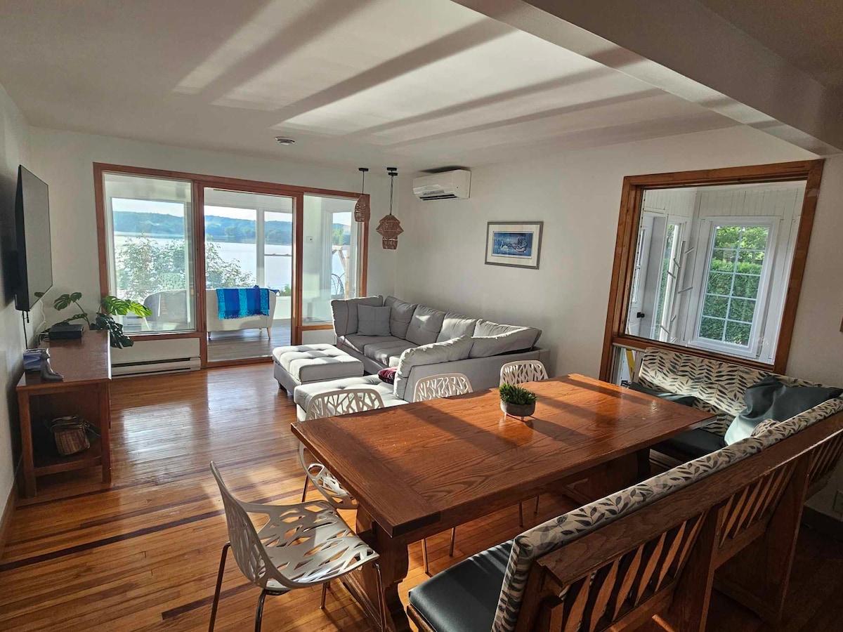 Gönnen Sie sich einen einzigartigen Aufenthalt am See in diesem hellen Haus mit 3 Schlafzimmern, komplettem Badezimmer und Dusche. In fast allen Räumen genießen Sie einen Blick auf den See: sei es beim Kochen, beim Entspannen im Wohnzimmer, im Hauptschlafzimmer oder bei einem Essen mit Freunden im Freien. Diese Umgebung ist perfekt, um Ihre Batterien aufzuladen, Zeit mit der Familie oder Freunden zu verbringen und sogar für die Telearbeit dank des Highspeed-Internets.