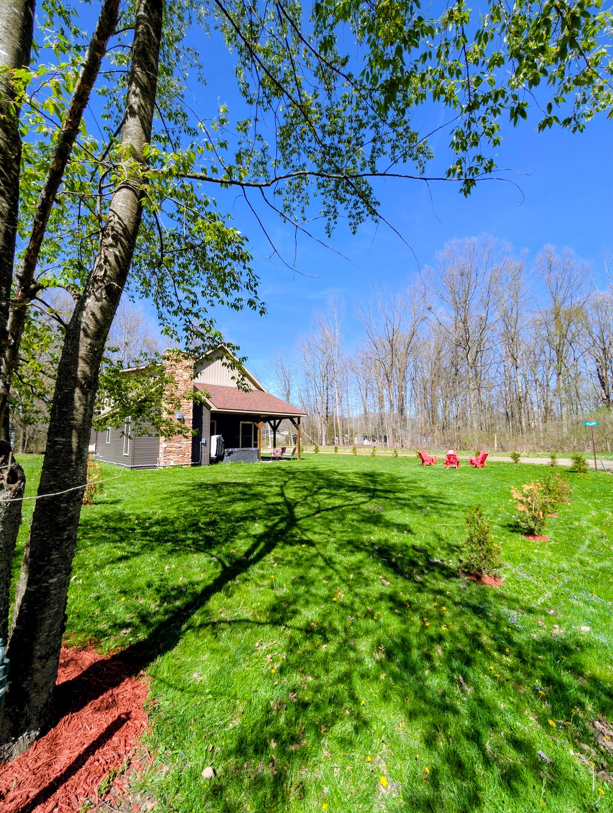 Es hat etwas Besonderes, in den Bäumen zu sein, umgeben von Natur. In diesem gemütlichen, kleinen Baumhaus wirst du feststellen, dass kein Detail übersehen wurde. Genieße den Waldblick, wo du wahrscheinlich wilde Rehe oder Truthähne sehen wirst. Mach ein Feuer in der Feuerstelle, genieße ein Bad im Whirlpool unter dem Sternenhimmel, genieße die Freiheit einer Außendusche (verfügbar vom 1. Mai bis 25. Oktober) oder entspanne dich auf der Hängematten-Terrasse. Du hast alles, was du für den perfekten Kurzurlaub benötigst. Sobald du ankommst, wirst du nie wieder abreisen wollen.
