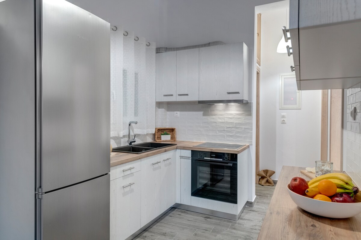 Erdgeschosswohnung von 30 qm im Zentrum von Ermoupolis. Es hat alles, was Sie für einen komfortablen und angenehmen Aufenthalt benötigen.Ungefähr 5 Minuten zu Fuß (500 Meter) vom Hafen, dem Hauptplatz Miaouli, den Hauptstraßen mit Geschäften, Cafés,Restaurants, Bars.Einfache Parkplätze und ein paar Meter von der kostenlosen städtischen Bushaltestelle.In wenigen Metern Radius gibt es einen großen SUPERMARKT, Bäckerei, Lebensmittelgeschäft, Metzgerei, Apotheke und das Krankenhaus von Syros.