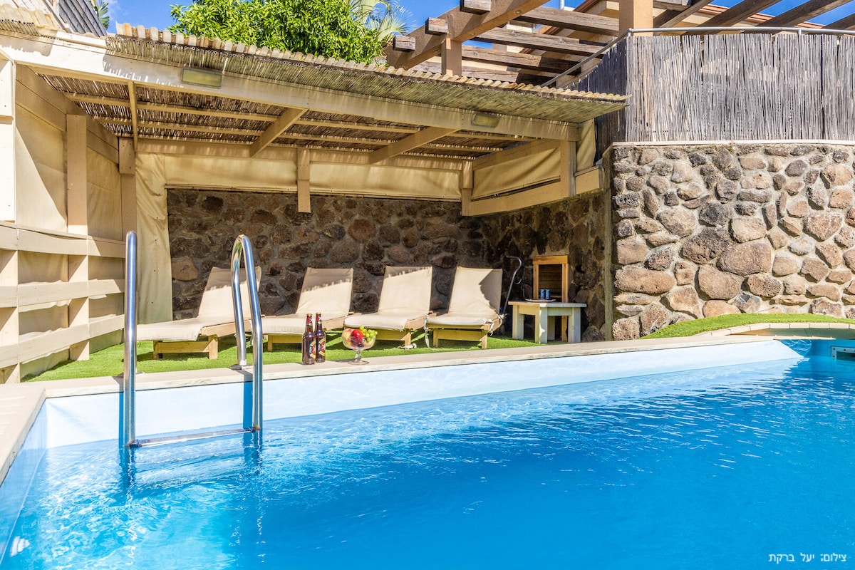Kinnorot Estate - Familiensuite aus Stein mit Pool im Komplex