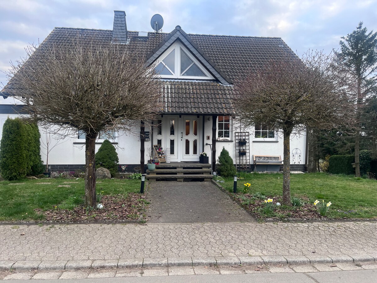 Willkommen in unserer voll ausgestatteten Ferienwohnung in Hausten, einem ruhigen Dorf in der Vulkaneifel. Die Wohnung bietet Platz für bis zu 6 Personen (2 Schlafzimmer + Schlafcouch), Küche, Wohnzimmer und Bad mit Dusche. Handtücher, Bettwäsche, Pflegeartikel und Küchengrundausstattung sind vorhanden. Perfekt zum Wandern, Entspannen oder für Ausflüge zum Nürburgring (14 km) und Maria Laach (12 km).