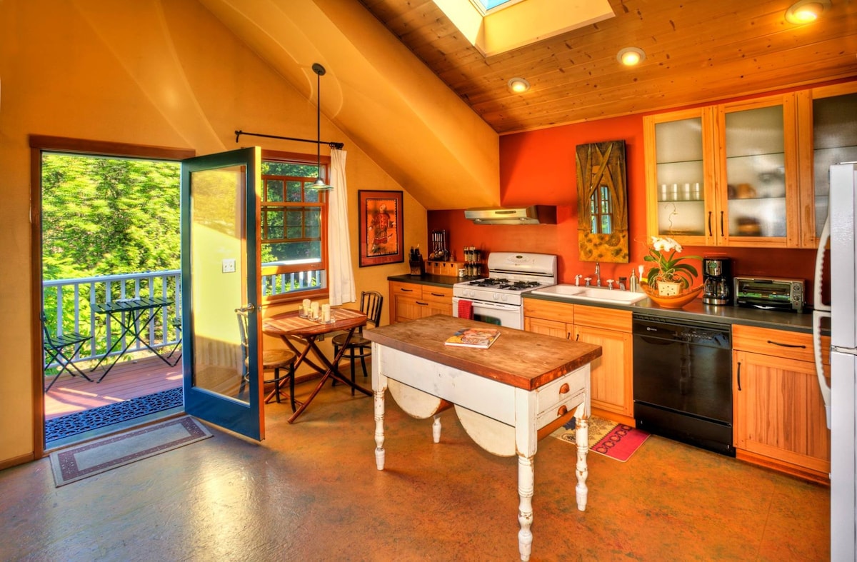 Cabin Fever ist ein privates, kleines Haus inmitten des Waldes – ein friedliches, einzigartiges Refugium im Nordwesten. Genieße einen Whirlpool unter den Bäumen, ein romantisches Hochbett, ein ausziehbares Sofa, eine Hängematte und eine voll ausgestattete Küche. Wir stellen auch einfache Grundzutaten für das Frühstück zur Verfügung, darunter Pfannkuchenpulver, Sirup, Müsli, Kaffee und Tee, damit du morgens gemütlich und selbstständig in den Tag starten kannst. Eigener Parkplatz inklusive. Bei Cabin Fever dreht sich alles um Privatsphäre, Entspannung und einen Hauch von Romantik.