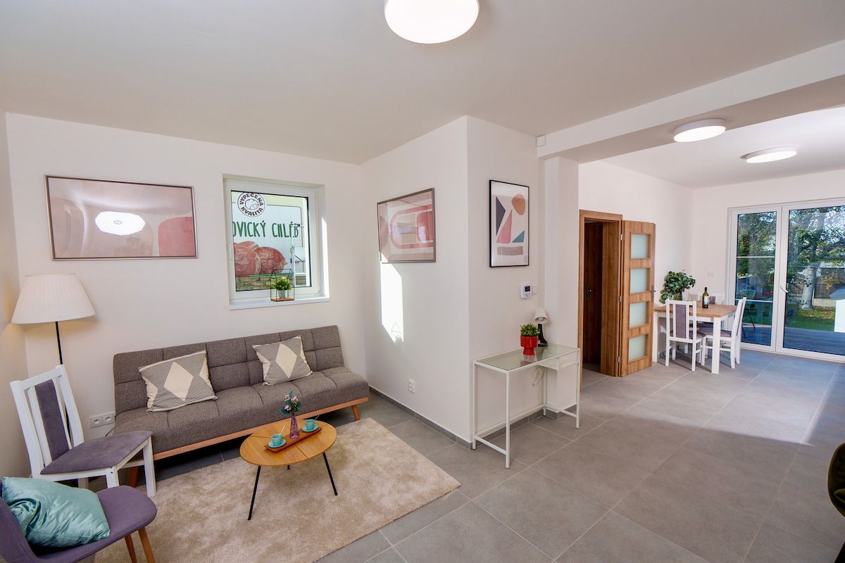 Willkommen in unserem gemütlichen, komplett neu renovierten Haus, nur 20 Minuten von Prag und 12 Minuten vom Flughafen entfernt! Genieße eine helle Küche, ein gemütliches Wohnzimmer, eine geräumige Toilette im Erdgeschoss und ein komplettes Badezimmer im Obergeschoss. Bonus: kostenloses, altes, aber einsatzbereites Škoda Fabia-Auto inklusive, um die Region in deinem eigenen Tempo zu erkunden! Schlafplätze für bis zu 4 Personen mit 1 Hauptschlafzimmer und einem charmanten Kinderzimmer (auch als kleines Gästezimmer geeignet). Entspannen Sie sich auf der sonnigen Holzterrasse oder im großen Garten mit Apfel- und Walnussbäumen.