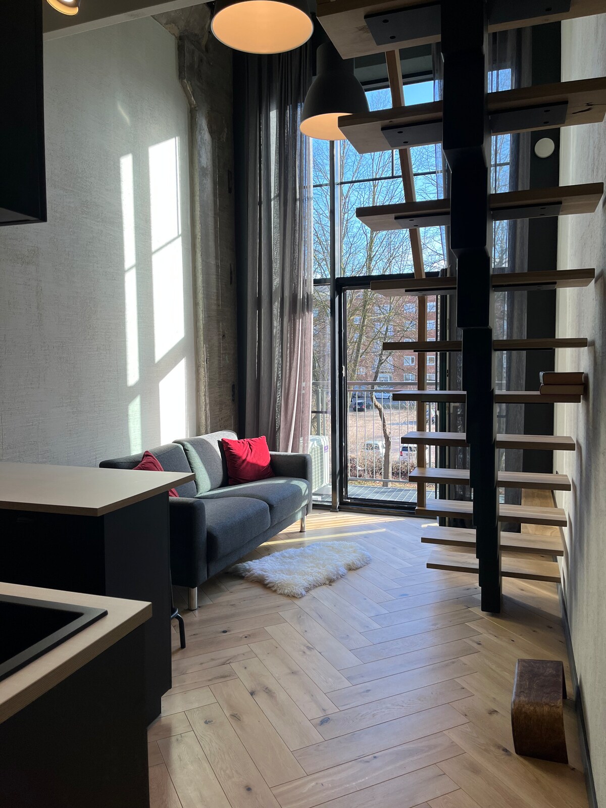 Wir bieten Loft-Wohnung mit 4 Meter hohen Fenstern und fast 5 Meter hohen Decken an. Es hat eine industrielle, aber dennoch luxuriöse Atmosphäre. Mit brandneuer, voll ausgestatteter Küche und Kingsize-Bett wird es bequem sein, deine Zeit in Klaipeda zu verbringen. Auch befindet es sich neben der Altstadt, so dass es perfekt für Menschen ist, die gerne die schönsten Orte der Stadt schnell erreichen.