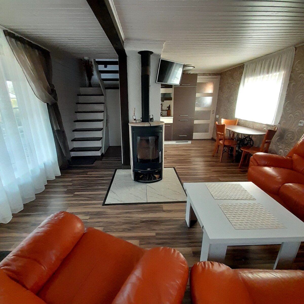 Dieses Haus ist ein Familiengrundstück, das von Generation zu Generation weitergegeben wurde und ihm eine besondere Wärme und Gemütlichkeit verleiht. Das Haus ist vollständig ausgestattet mit allem, was Sie für Erholung benötigen, einen gegrabenen Teich, eine gefühlte Sauna, einen Pavillon. Du findest hier eine Küche mit allen Geräten, ein komfortables und schönes Badezimmer. Jetzt kann es bequem schlafen - 6 Personen. Zusätzlich ist ein Babybett vorhanden, das für einen sicheren Schlaf für die kleinen Familienmitglieder sorgt.