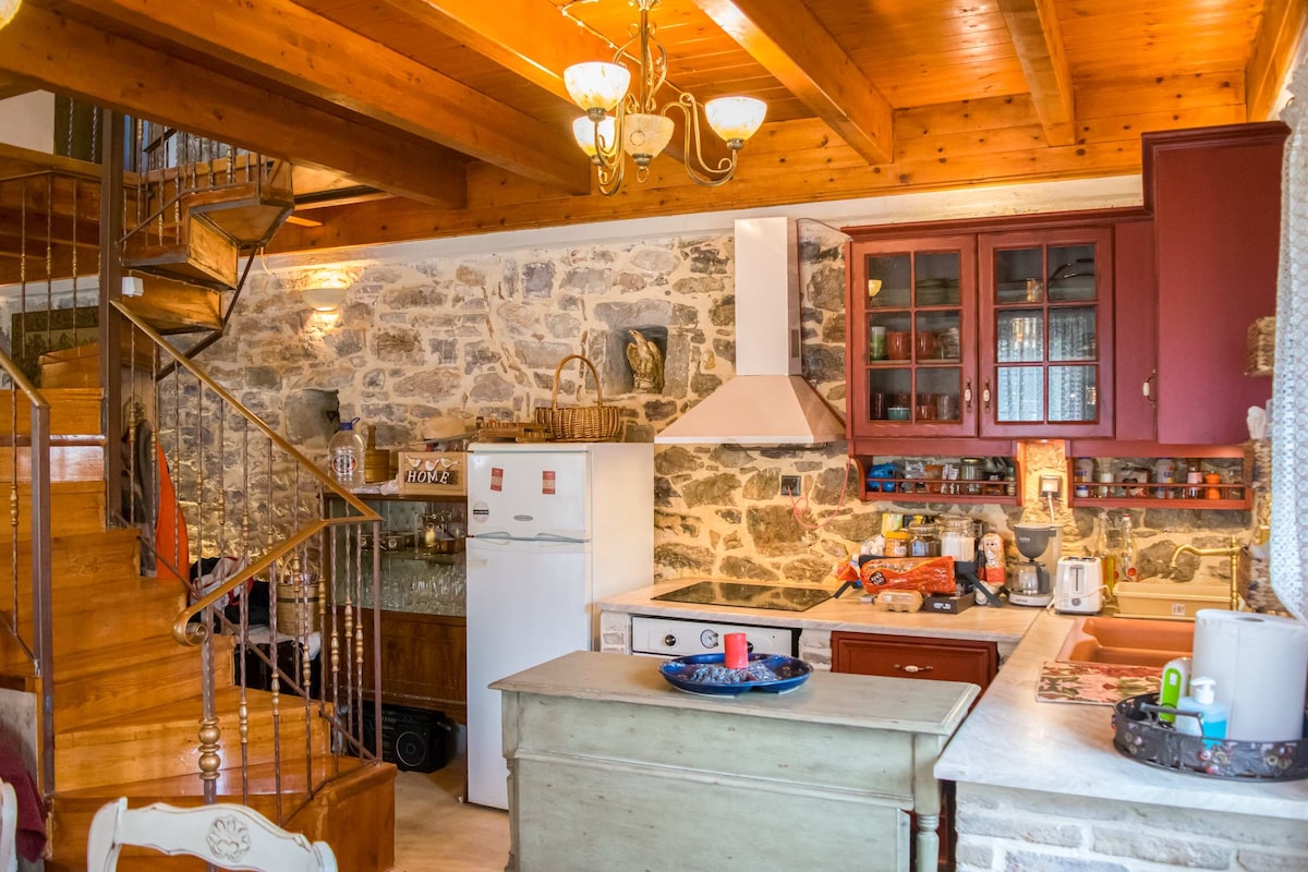 Leben Sie in einer märchenhaften Umgebung voller Farben und künstlerischer Aura, dem Raum eines Kunstkonservators. Der Raum ist ein einziges Zimmer, das Schlafzimmer ist kreativ mit Vorhängen und einer Bibliothek unterteilt und das Dachgeschoss verfügt über zwei Doppel- und Einzelmatratzen, im Wohnzimmer gibt es einen schönen funktionalen Kamin und einen Ofen!