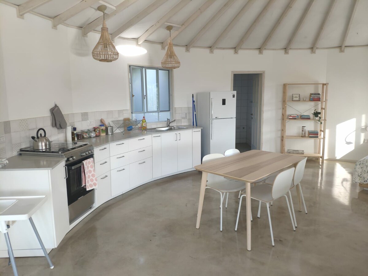 Willkommen in unserem Zauberbaumhaus in Amirim! 🌿 Erlebe eine einzigartige Mischung aus Luxus und Natur, eingebettet zwischen alten Eichen in einem ruhigen, grünen Dorf. Perfekt für Paare oder Alleinreisende, die Ruhe, die berühmte Küche Galiläas und malerische Wanderwege suchen. Egal, ob du neue Energie tanken oder Romantik erleben möchtest, unser Kuppelhaus bietet den ultimativen Rückzugsort in ruhiger Lage. Komm wegen der Natur, bleib wegen der Ruhe. 🥰