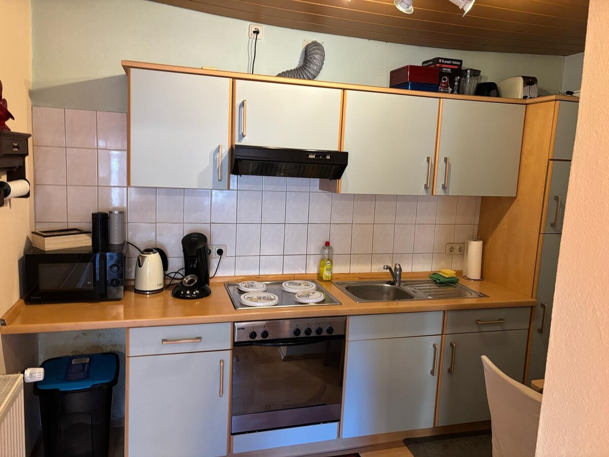 Nur 5 km von Aschaffenburg auf den Vorhöhen des Spessart biete ich meine moderne und sonnige 2,5 ZiWohnung mit eigenem Eingang an, Morgensonne auf der Dachterasse mit Fernsicht und einem Balkon. 1,60 m Bett, Badewanne, TV, WLAN und Kitchenette. Im Haus leben 2 freundliche Katzen. 15 min zur A3 und A45, aber direkt in der Natur am Ortsrand zum Entspannen. Man erreicht fussläufig einen 24h Supermarkt und Gastronomie, 5 min zu Fuß zum Bus nach Aschaffenburg HBF. Ich freue mich auf Euren Besuch !
