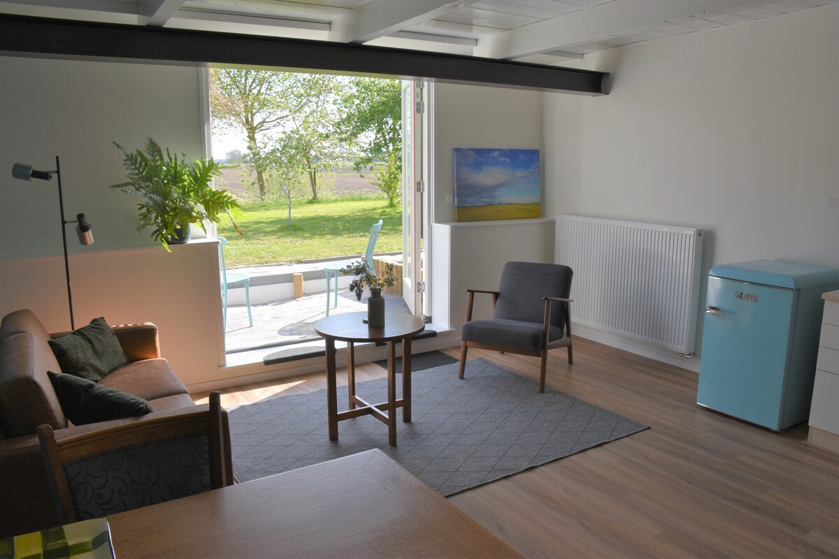 Komfortables Gartenhaus, ruhig gelegen in unserem grünen Wildgarten. Viel Privatsphäre. Ein schöner Ort, um die Ruhe, den Raum und die Natur zu genießen. Das Wattenmeer hat viel zu bieten, und Sie sind in einer Viertelstunde mit dem Boot auf Schiermonnikoog. Auch die Stadt Groningen selbst ist innerhalb einer halben Stunde zu erreichen.