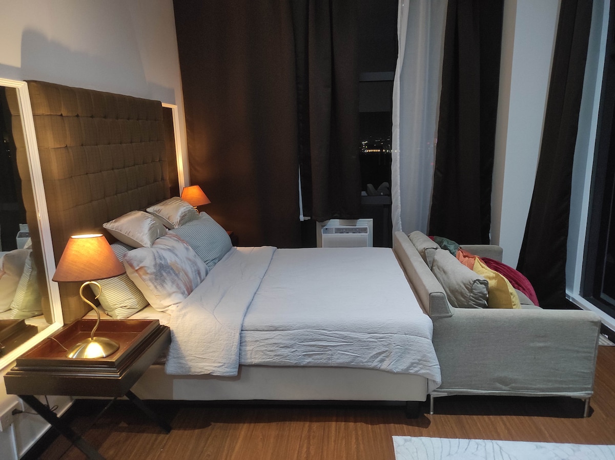 Mache einen Spaziergang am frühen Morgen entlang der Millionärsreihe von Bonifacio Global City, wo alles nur einen Steinwurf entfernt ist. Erreichbar der längste Stadtpark in Metro Manila - der BGC Greenway Park, Las Flores, Wildflour, Burgos Circle, One Bonifacio Mall und viele weitere berühmte Restaurants und Einrichtungen in Fort Bonifacio BGC. Wir hoffen, dass du dich mit unserer 45 m ² großen, voll möblierten Loft-Einheit wie zu Hause fühlst. Ideal für Reisende, Paare oder alle, die einen ruhigen Kurzurlaub genießen möchten.