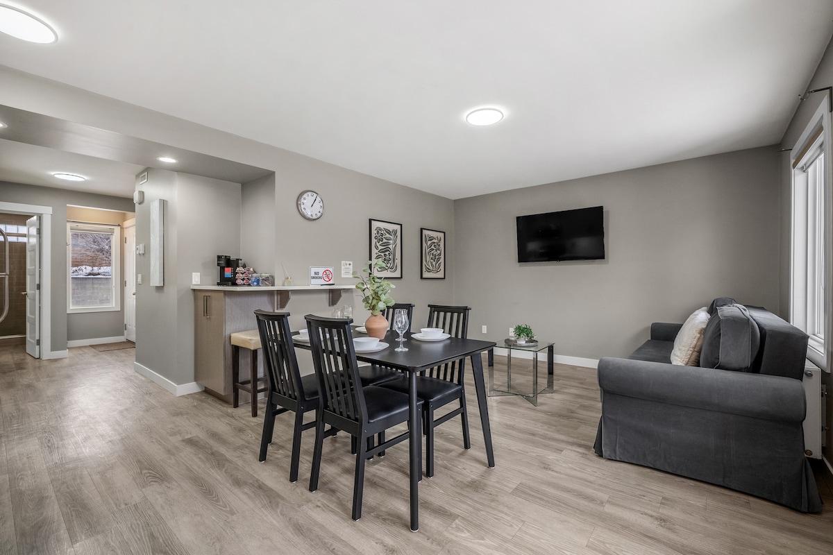 Willkommen in dieser gemütlichen Wohnung mit 1 Schlafzimmer und 1 Badezimmer im Herzen von Altadore! Haustierfreundlich und nur wenige Schritte vom örtlichen Hundepark entfernt, ist es perfekt für dich und deinen pelzigen Begleiter. Nur 5 Minuten bis zur Innenstadt und 10 Minuten bis zum Calgary Stampede Gelände. Genieße eine voll ausgestattete Küche, schnelles High-Speed-WLAN, einen hellen Wohnbereich und ein komfortables Schlafzimmer mit Queensize-Bett. In der Nähe von Cafés, Geschäften und Flusswegen – alles, was du für einen erholsamen Aufenthalt in Calgary brauchst.